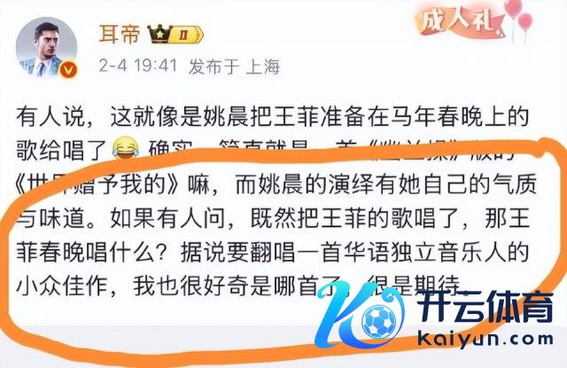 案牍 | 易幸开云登录入口登录APP下载(中国)官方网站 裁剪 | 南枫 内娱又吵杂咯。 这边有媒体爆出中戏已有两位饰演系主任主动投案,何处闫学晶又骤然爆上了热搜。 本来不搭边的两件事,却好像还真有千丝万缕的关系。 只可说不作死就不会死,有时间东说念主照旧低调点好。 天然,这瓜寰球就自行吃吧,毕竟当下似乎还有更遑急的事—— 过年! 春节假期将至,有些网友早已提早投入假期景况,而还在上班的东说念主心也早已飞回了家。 天然,左右过年,大师常商讨的,即是春晚了。 此次,似乎又有大动作。 当"王菲"与